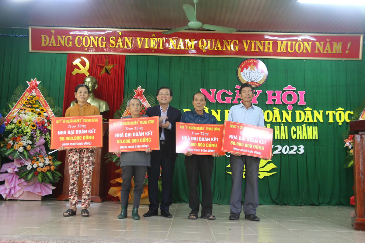 Cùng với đó, 4 hộ dân tại liên KDC xã Hải Chánh cũng được nhận 4 ngôi nhà Đại đoàn kết từ Quỹ “Vì người nghèo” Trung ương do Phó Chủ tịch Ủy ban Trung ương MTTQ Việt Nam Nguyễn Hữu Dũng trao tặng. Lãnh đạo Trung ương, lãnh đạo địa phương cũng trao tặng cán bộ và Nhân dân liên KDC xã Hải Chánh nhiều phần quà khác.