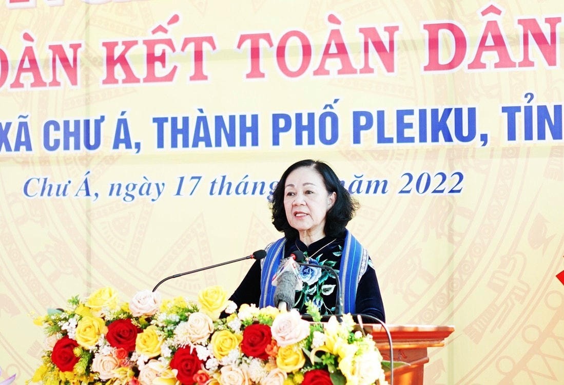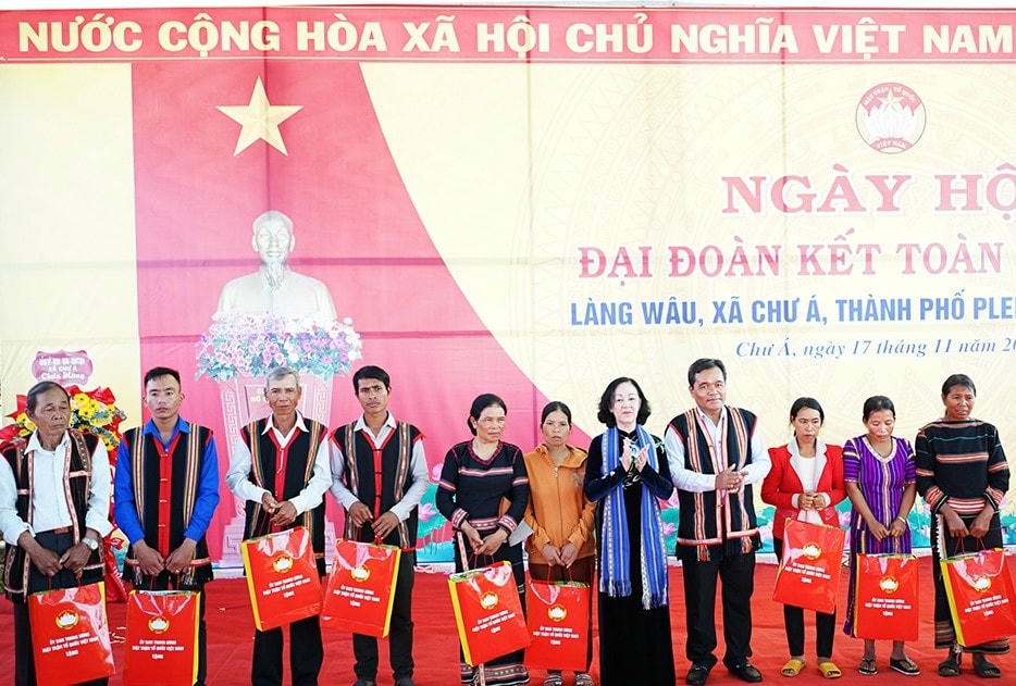 Phát biểu tại Ngày hội, thay mặt lãnh đạo Đảng, Nhà nước, MTTQ Việt Nam, Trưởng Ban Tổ chức Trung ương Trương Thị Mai, ghi nhận, biểu dương những thành tích mà cán bộ, người dân làng Wâu, xã Chư Á, TP PleiKu đạt được trong thời gian qua.