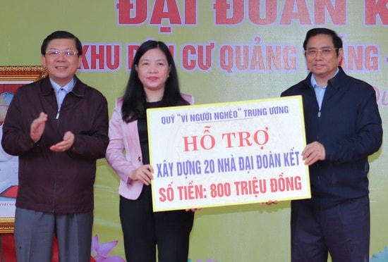 Dịp này, ông Phạm Minh Chính, Ủy viên Bộ Chính trị, Bí thư Trung ương Đảng, Trưởng ban Tổ chức Trung ương và ông Nguyễn Hữu Dũng, Phó Chủ tịch Ủy ban Trung ương MTTQ Việt Nam tặng Thanh Hoá 800 triệu đồng để xây dựng 20 nhà Đại đoàn kết; tặng người dân thôn Quảng Thắng 50 triệu đồng để xây dựng quỹ khuyến học.