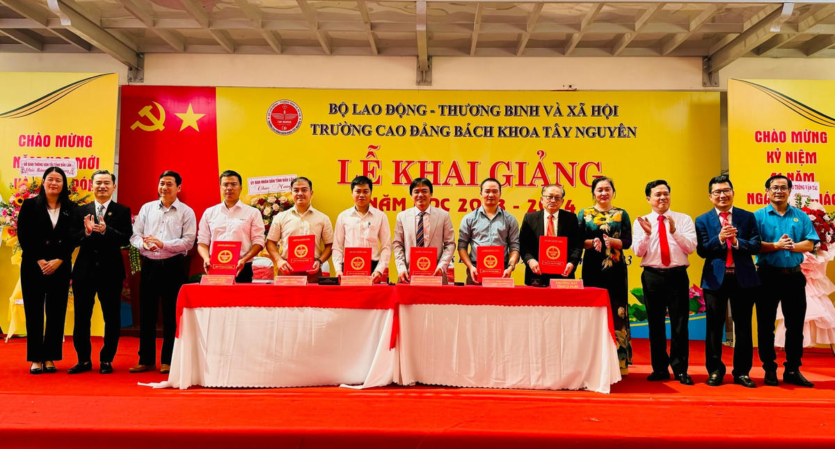 Tại lễ khai giảng, nhà trường đã tổ chức kí kết về hợp tác với các doanh nghiệp có uy tín tại địa phươn và trên địa bàn cả nước về vấn đề thực hành, thực tập và việc làm cho các sinh viên sau khi tốt nghiệp.
