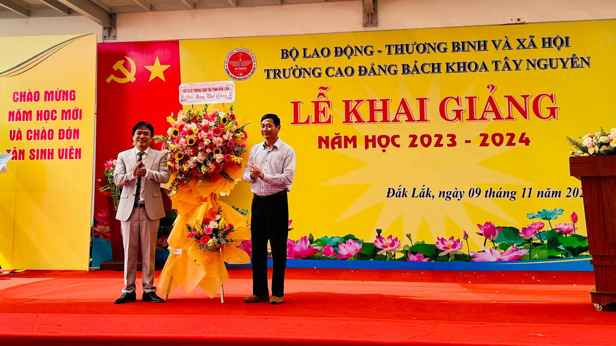 Sáng 9/11, Trường Cao đẳng Bách khoa Tây Nguyên (số 300 Hà Huy Tập, P. Tân An, TP Buôn Ma Thuột, tỉnh Đắk Lắk) long trọng tổ chức Lễ khai giảng năm học 2023 – 2024 và Chào mừng 41 năm Ngày Nhà giáo Việt nam 20/11.