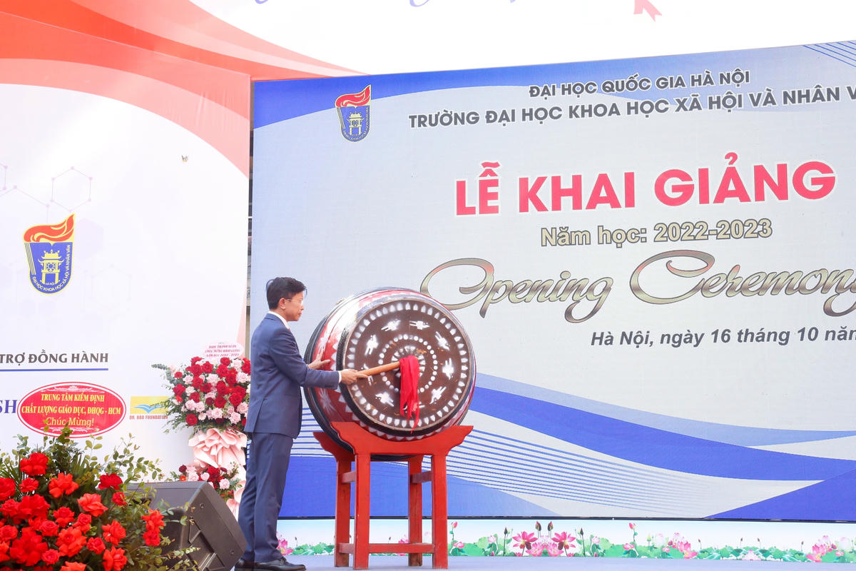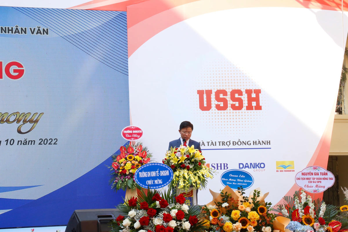 Phát biểu tại buổi lễ, GS.TS Hoàng Anh Tuấn cho biết, năm nay, Lễ khai giảng mang ý nghĩa đặc biệt hơn bởi Trường Đại học KHXH&NV đã hoàn thành nhiều nhiệm vụ then chốt như hoàn thành chương trình đánh giá chất lượng nhà trường chu kỳ 2; kiện toàn tốt đẹp bộ máy tổ chức và sắp xếp hài hòa công tác cán bộ; hoàn thành căn bản chỉnh trang cơ sở vật chất; vượt kế hoạch xuất sắc công tác tuyển sinh ở cả ba hệ cử nhân, thạc sĩ và tiến sĩ…