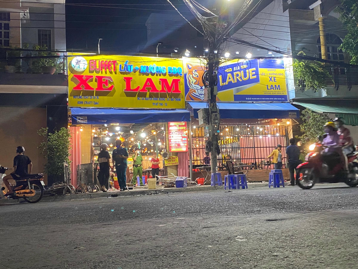 Theo cơ quan công an, vào khoảng 19 giờ 34 phút ngày 11/9/2023, tại quán Buffet “Xe Lam” lẩu-nướng BBQ, tọa lạc tại số 44 Nguyễn Minh Đường, xã Đạo Thạnh, TP Mỹ Tho do anh Nguyễn Minh Trung (34 tuổi), ngụ số TP Mỹ Tho làm chủ, xảy ra 1 vụ đánh nhau gây mất trật tự, có tiếng nổ lớn.