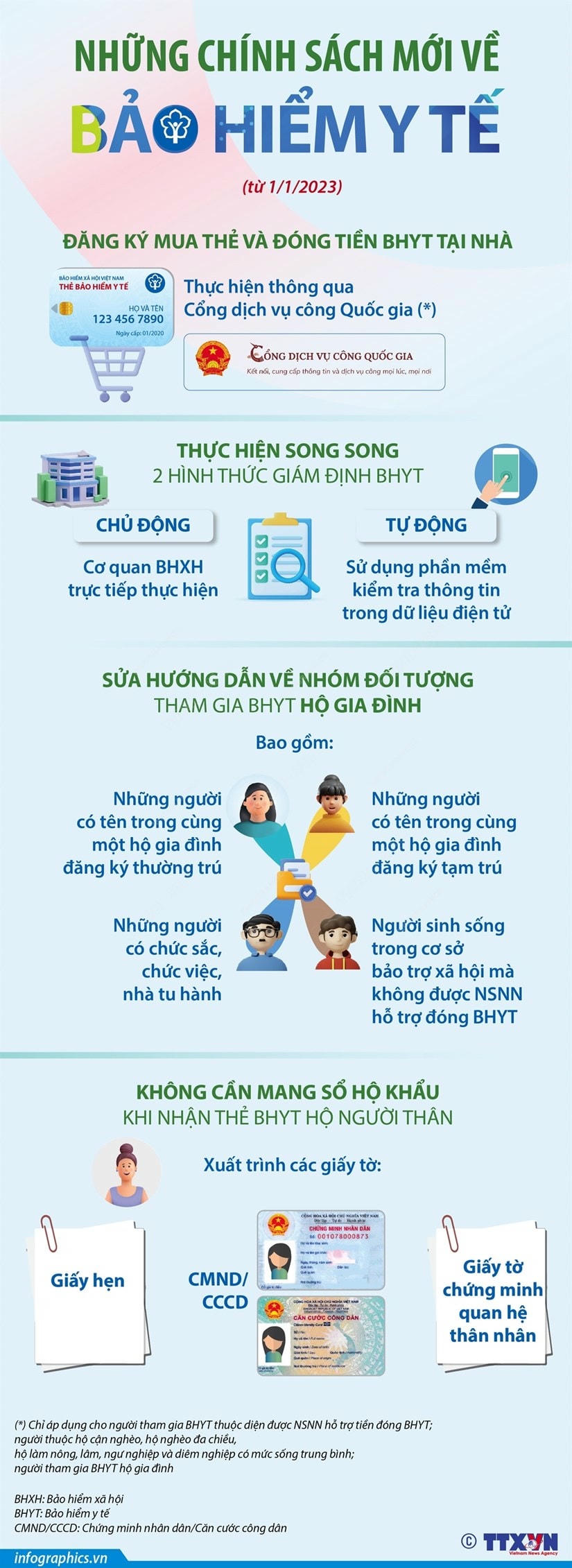 Quy trình giám định bảo hiểm y tế mới, đăng ký mua thẻ BHYT tại nhà, sửa hướng dẫn về đối tượng tham gia BHYT hộ gia đình… là những chính sách mới về BHYT sẽ có hiệu lực từ tháng 1/2023.