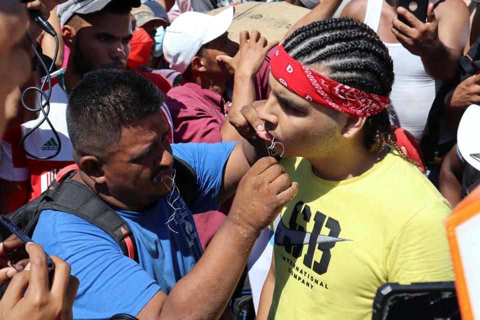 Nhóm người di cư, chủ yếu đến từ Trung và Nam Mỹ, hôm 15/2 tập trung ở thành phố Tapachula, phía nam Mexico, giúp nhau tự khâu miệng bằng kim và chỉ cứng, chỉ để lại một khoảng trống nhỏ đủ uống nước hoặc nạp chất lỏng. Họ tự dùng cồn thấm máu vết khâu trên miệng.
