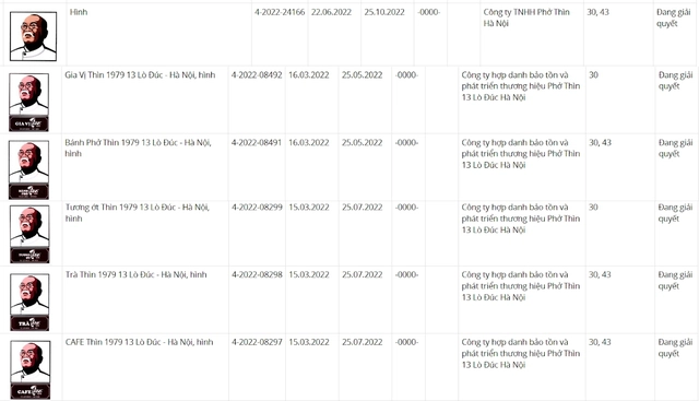 Phở Thìn 13 Lò Đúc đã được đăng ký bảo hộ thương hiệu Việt Nam vào năm 2020 với bộ nhận diện mới bao gồm chữ số, hình ảnh nhưng vẫn trong tình trạng "đang giải quyết".