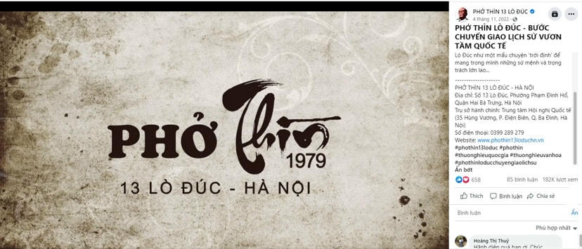 Trên trang fanpage Phở Thìn 13 Lò Đúc có tích xanh đã đăng tải video với nội dung "Phở Thìn Lò Đúc - Bước chuyển giao lịch sử vươn tầm quốc tế" về Đoàn Hải Trung, Giám đốc điều hành mới của thương hiệu phở nổi tiếng và là cháu trai của ông Nguyễn Trọng Thìn, nhà sáng lập thương hiệu.