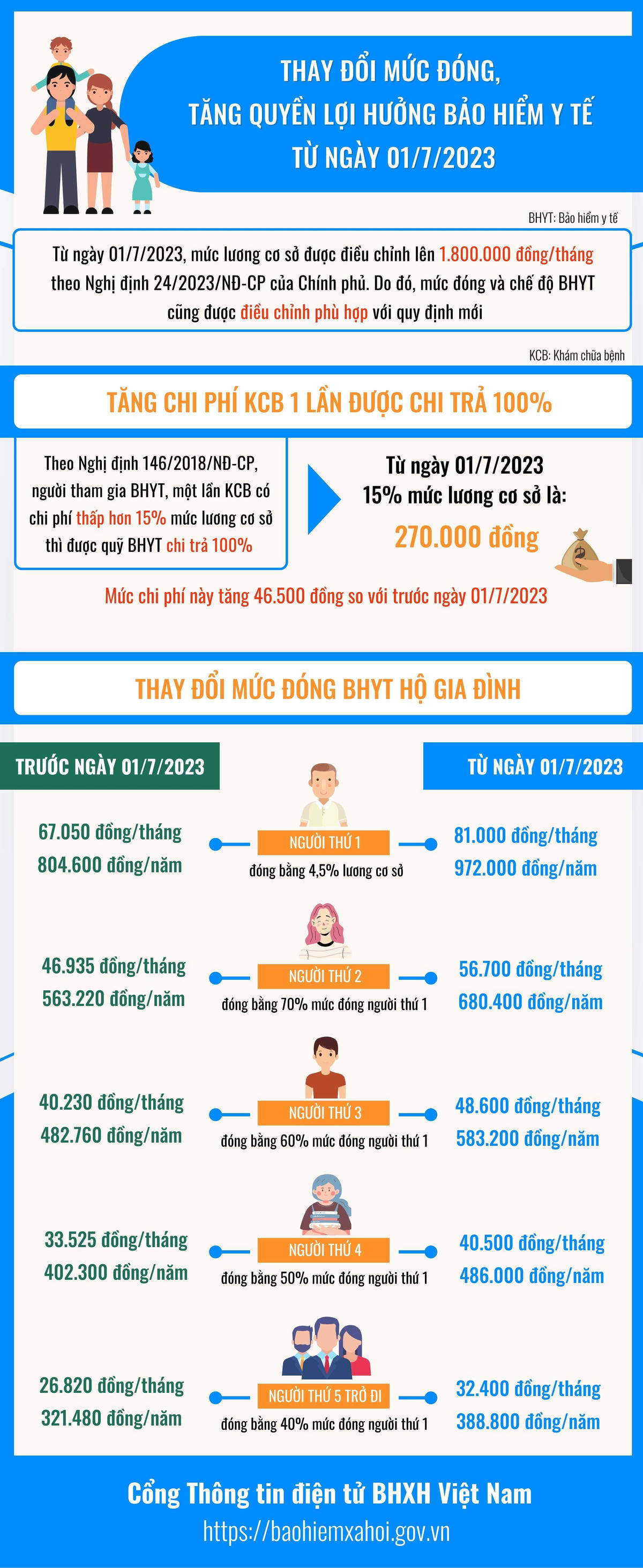 Từ ngày 1/7/2023, mức lương cơ sở được điều chỉnh lên 1.800.000 đồng/tháng theo Nghị định 24/2023/NĐ-CP của Chính phủ. Do đó, mức đóng và chế độ BHYT cũng được điều chỉnh phù hợp với quy định mới.
