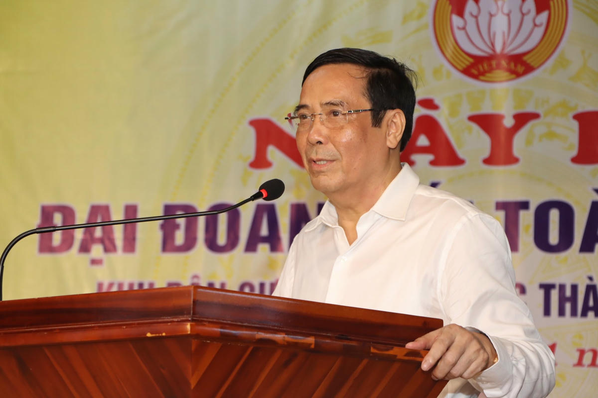 Chủ tịch Hội Người cao tuổi Việt Nam Nguyễn Thanh Bình chung vui Ngày hội Đại đoàn kết toàn dân tộc với người dân thôn Nam Bắc Thành, xã Cẩm Thành (Cẩm Xuyên, Hà Tĩnh).