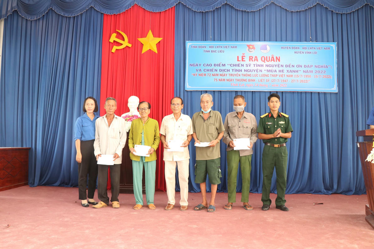 Ngày 24/7, Tỉnh đoàn Bạc Liêu tổ chức Lễ ra quân Ngày cao điểm “Chiến sĩ tình nguyện đền ơn đáp nghĩa” chào mừng kỷ niệm 72 năm Ngày Truyền thống lực lượng Thanh niên xung phong Việt Nam (15/7/1950 - 15/7/2022), 75 năm Ngày Thương binh - Liệt sỹ (27/7/1947 - 27/7/2022) và Chiến dịch tình nguyện “Mùa hè xanh” năm 2022.
