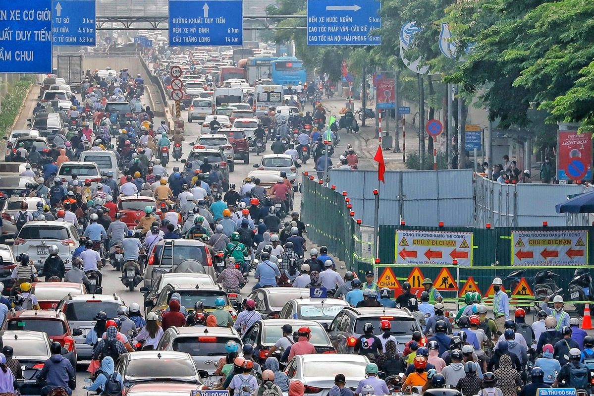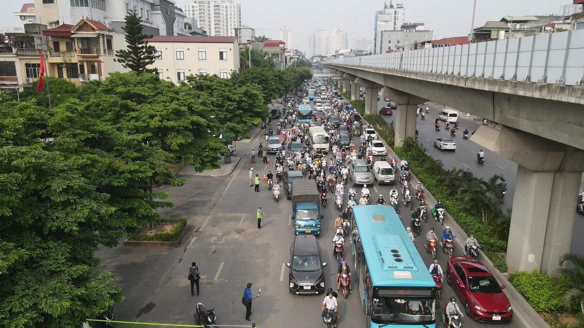 Tuyến đường Nguyễn Trãi ùn tắc dài hàng km vì 'lô cốt' thi công dự án nước thải