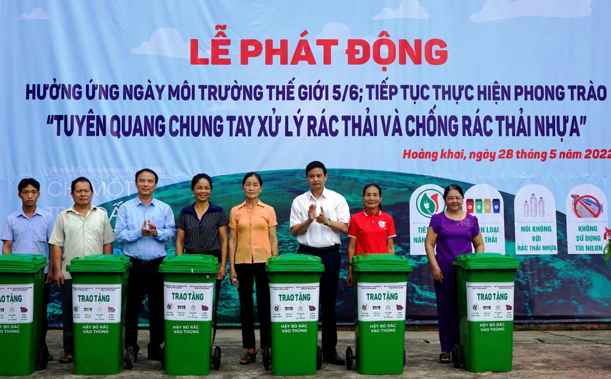 Tại Lễ phát động, lãnh đạo MTTQ tỉnh Tuyên Quang và lãnh đạo Sở Tài nguyên và Môi trường đã trao 2 xe đẩy rác, 6 thùng rác di động cho các tổ tự quản ở khu dân cư.