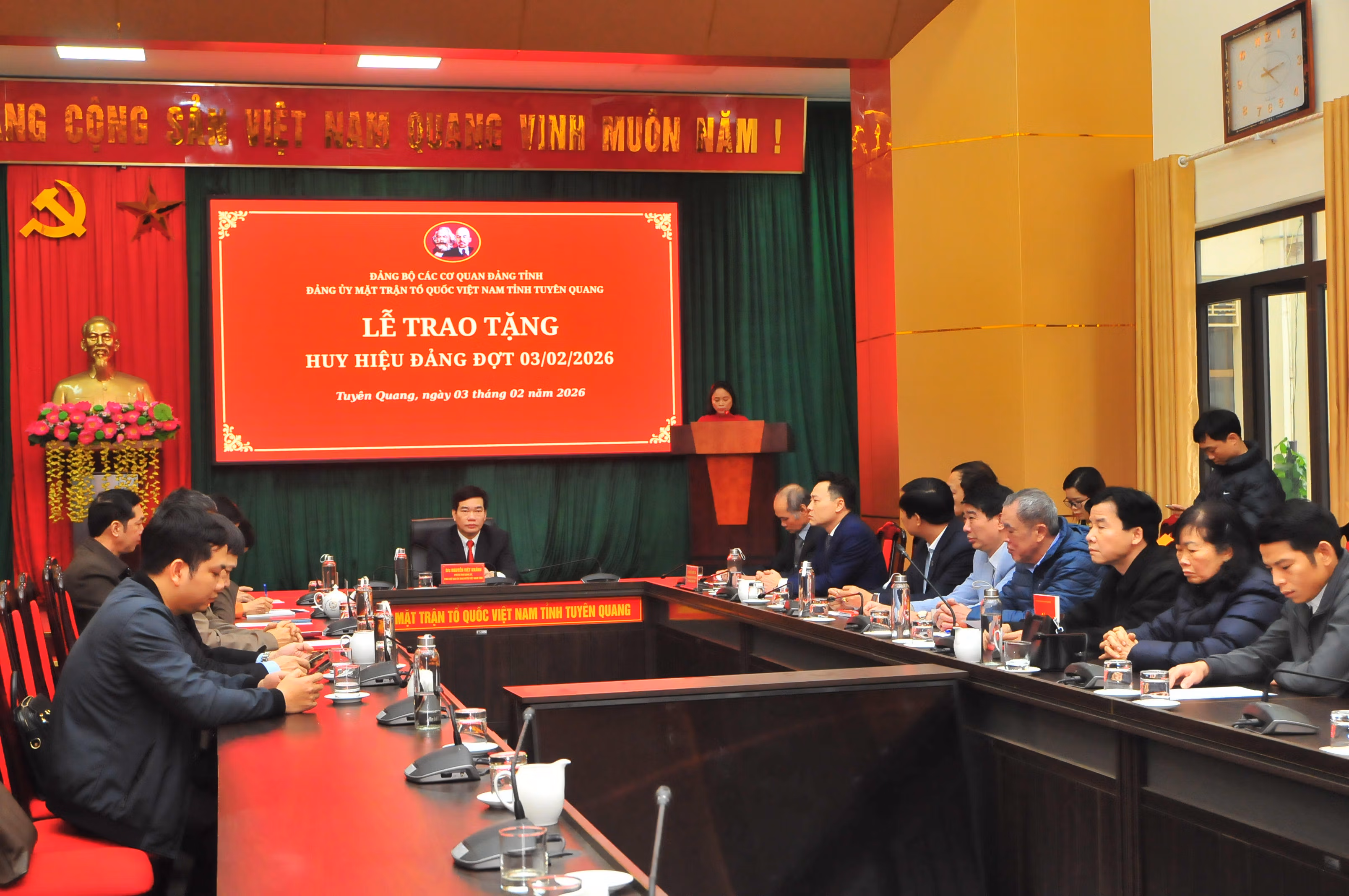 Thực hiện Quyết định của Ban Thường vụ Tỉnh ủy Tuyên Quang về việc trao tặng Huy hiệu Đảng đợt 3/2, Chiều 3/2, Đảng uỷ MTTQ Việt Nam tỉnh Tuyên Quang đã long trọng tổ chức Lễ trao tặng Huy hiệu Đảng cho 975 đảng viên đang sinh hoạt tại các tổ chức cơ sở Đảng trực thuộc.
