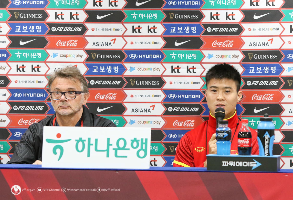 Nhà cầm quân người Pháp cũng chia sẻ, một trong những mục tiêu của đội tuyển Việt Nam là làm thế nào để các cầu thủ bình tĩnh hơn, vượt qua được áp lực từ cầu thủ đối phương. Đương nhiên, với đối thủ mạnh như Hàn Quốc, cầu thủ Việt Nam vẫn có khoảng cách nhất định về trình độ. Nhưng tôi vẫn kỳ vọng các cầu thủ sẽ thể hiện nỗ lực cao nhất khi được vào sân...
