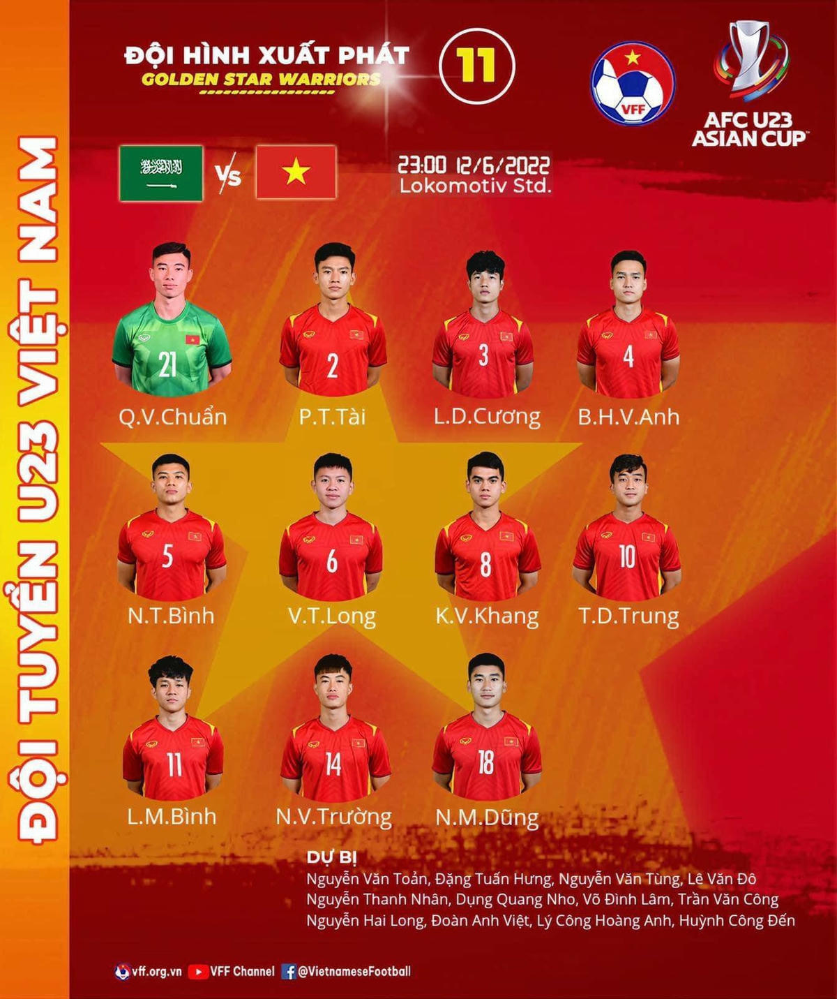 Cùng với đó, HLV Gong Oh Kyun cũng đã gây bất ngờ khi đăng ký Danh Trung và Minh Bình, hai cầu thủ mới bình phục chấn thương trong đội hình xuất quân của U23 Việt Nam trước U23 Saudi Arabia.
