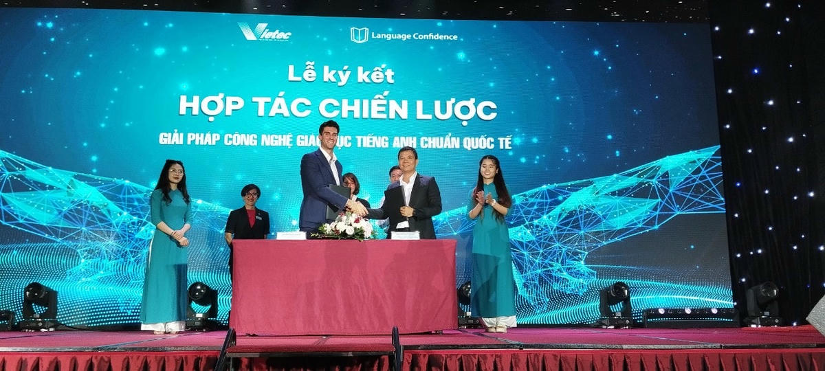 Đặc biệt, trong khuôn khổ sự kiện, Vietec đã chính thức ký kết hợp tác chiến lược cùng Language Confidence – Công ty hàng đầu của Úc trong lĩnh vực cung cấp giải pháp trí tuệ nhân tạo (AI) để cùng Vietec kiến tạo nên giải pháp Language Hub hoàn thiện về nội dung và đột phá về công nghệ.
