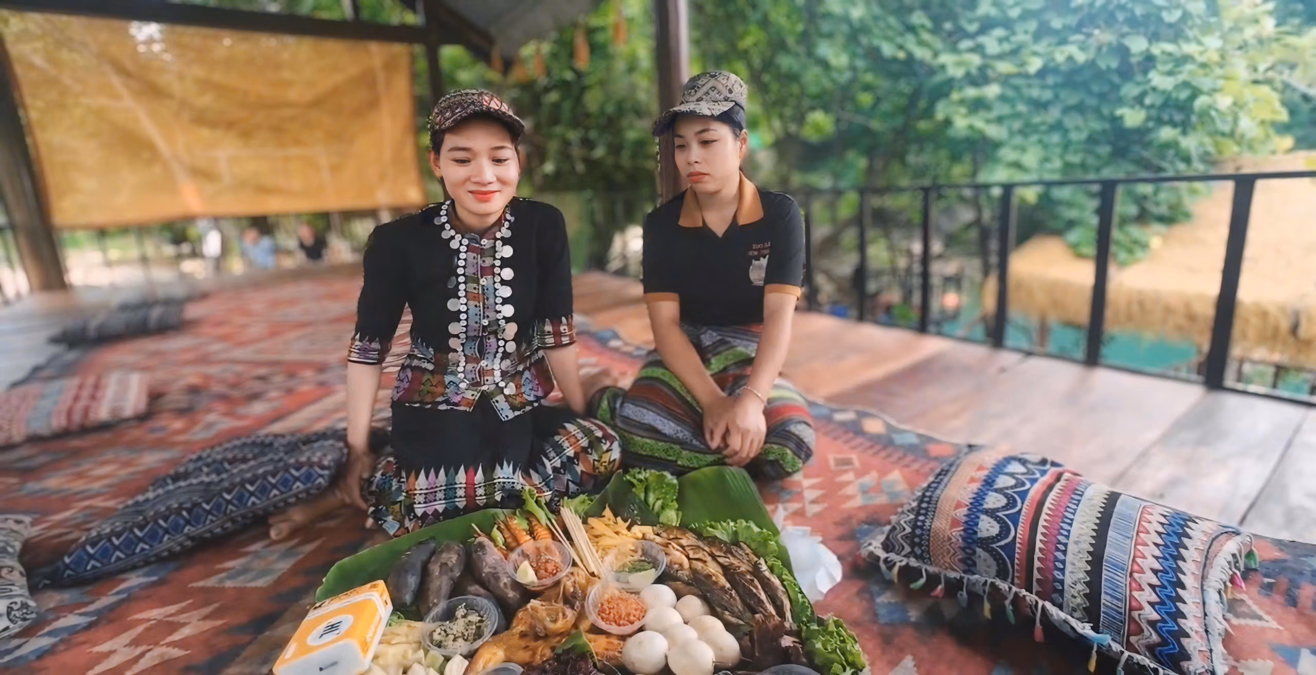 Mô hình du lịch "Suối Bản" của chị Hồ Thị Đoan ở xã Kim Ngân, tỉnh Quảng Trị thu hút một lượng lớn du khách với đặc sản gạo nếp than, cá suối, gà đồi... bên cạnh dòng nước suối mát lạnh cùng không gian nhà sàn đậm chất bản làng.