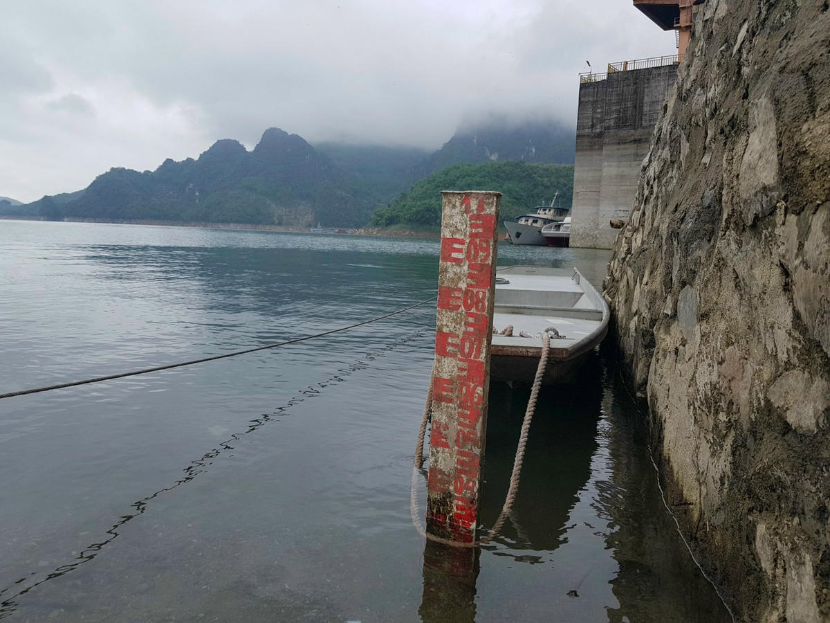 Ghi nhận của PV Báo Đại Đoàn Kết sáng 14/6 tại lòng hồ Hòa Bình, mực nước xuống thấp ở mức 102m, cách mực nước chết 22m, nhiều tàu thuyền tại khu vực cảng Bích Hạ neo đậu tại chỗ, san sát nhau.