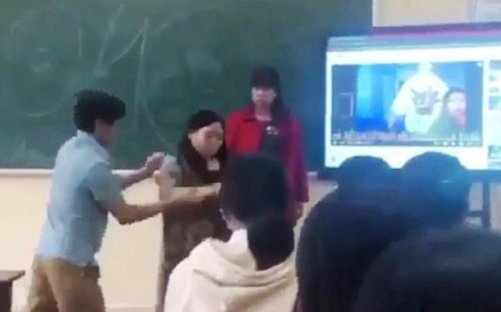 Cũng vào cuối tháng 10, một clip đăng tải trên mạng xã hội quay lại hình ảnh một nữ giáo viên bị đồng nghiệp khuyên nhủ, kéo tay ra khỏi lớp học vì không phải giờ của cô đứng lớp. Qua xác minh, hình ảnh được ghi tại một lớp 10 của Trường THPT Hai Bà Trưng (TP Huế). Vào tiết sinh hoạt lớp, cô giáo dạy môn Ngữ văn này đã xuất hiện là không đúng và đang dùng điện thoại để quay lại việc hỏi từng học sinh về việc ký đơn kiến nghị thay đổi giáo viên đứng lớp.