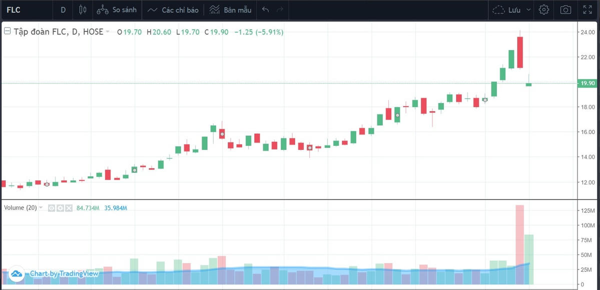 Hôm qua, khối lượng giao dịch của FLC lên đến 134,96 triệu đơn vị, cao nhất từ khi doanh nghiệp này niêm yết trên sàn chứng khoán TP HCM vào năm 2013. Giá cổ phiếu FLC từ 24.100 đồng, sắp chạm trần phiên sáng đã giảm sàn 21.000 đồng khi kết thúc phiên chiều.