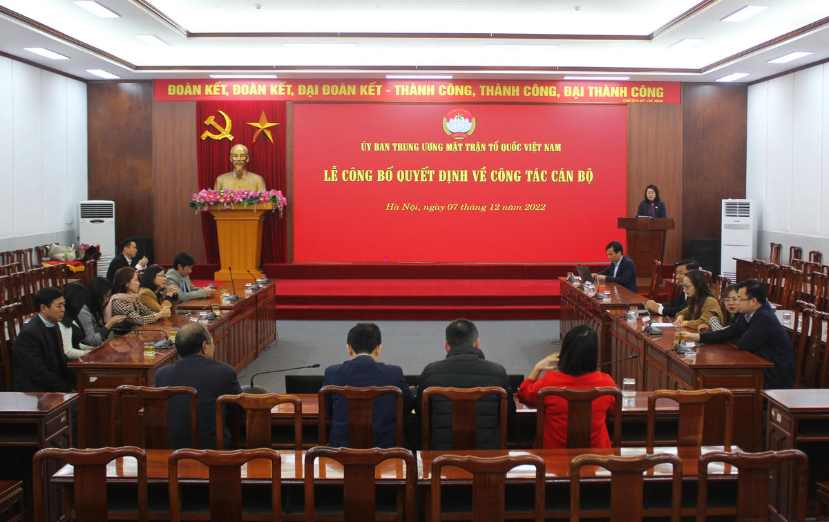 Ngày 7/12, tại Hà Nội, Ủy ban Trung ương MTTQ Việt Nam đã tổ chức Lễ công bố Quyết định về công tác cán bộ.