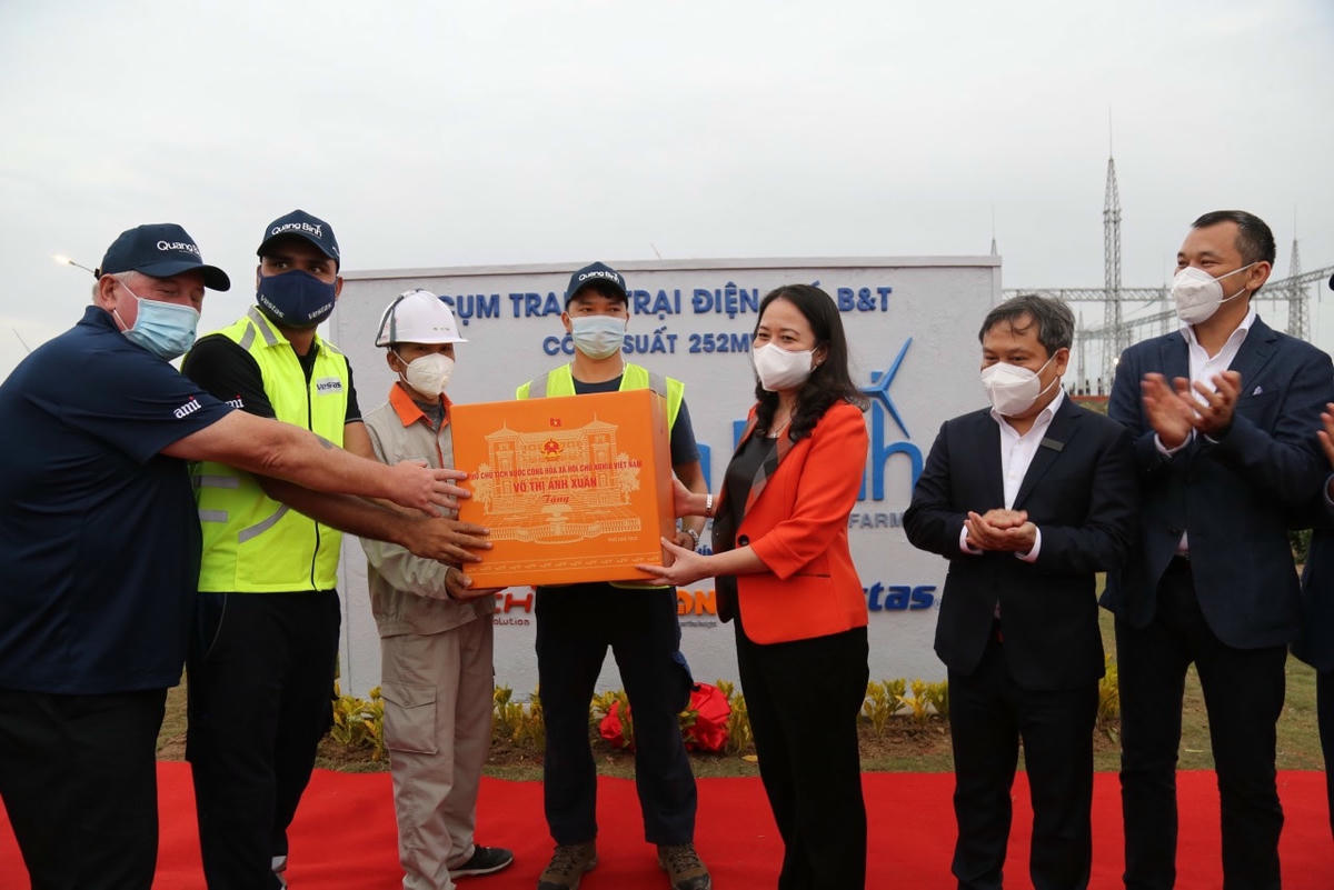 Tại buổi lễ, Phó Chủ tịch nước Võ Thị Ánh Xuân đã đánh giá cao nỗ lực của doanh nghiệp trong bối cảnh khó khăn do dịch Covid-19 nhưng đã bảo đảm tiến độ dự án. Phó Chủ tịch nước mong muốn thời gian tới, Cụm trang trại điện gió B&T phát huy hiệu quả đầu tư, tạo việc làm cho người dân địa phương, thực hiện tốt nghĩa vụ ngân sách đối với địa phương.