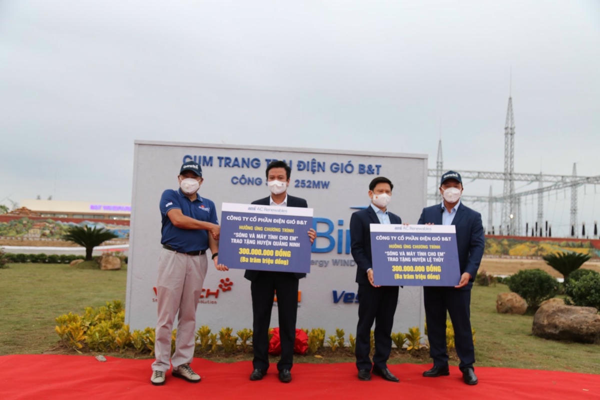 Được biết, trong bối cảnh dịch Covid-19 còn diễn biến khó lường, nhằm đảm bảo quy định phòng, chống dịch; Công ty cổ phần AMI AC Renewables đã tổ chức tối giản nghi lễ khánh thành, dành toàn bộ kinh phí tổ chức để ủng hộ chương trình “Sóng và máy tính cho em” cho 2 huyện Quảng Ninh và Lệ Thủy với tổng số tiền 600 triệu đồng.