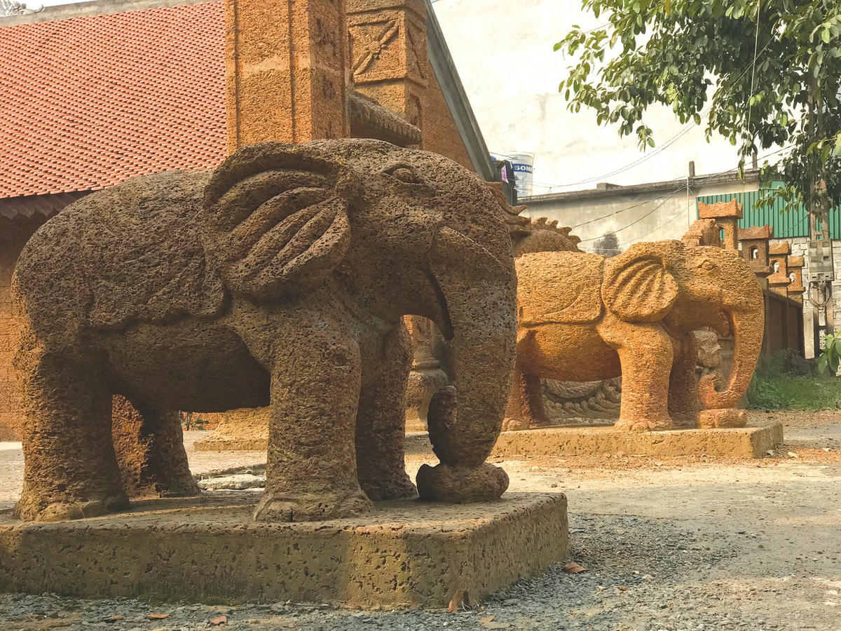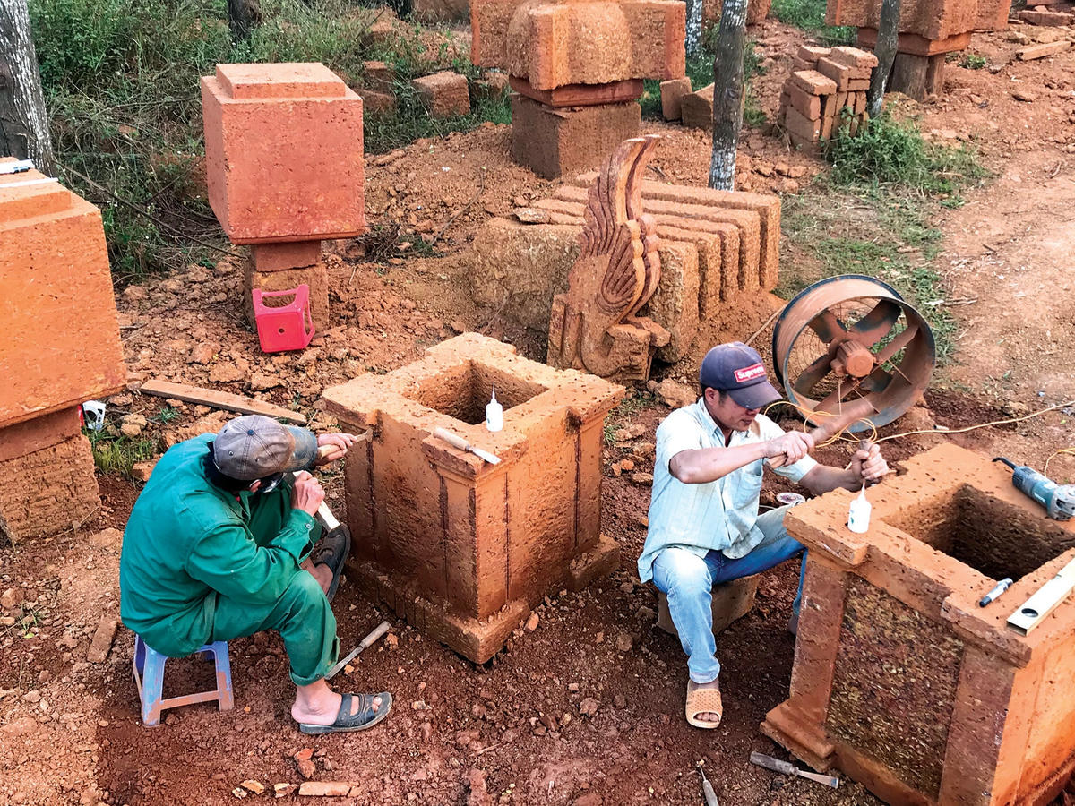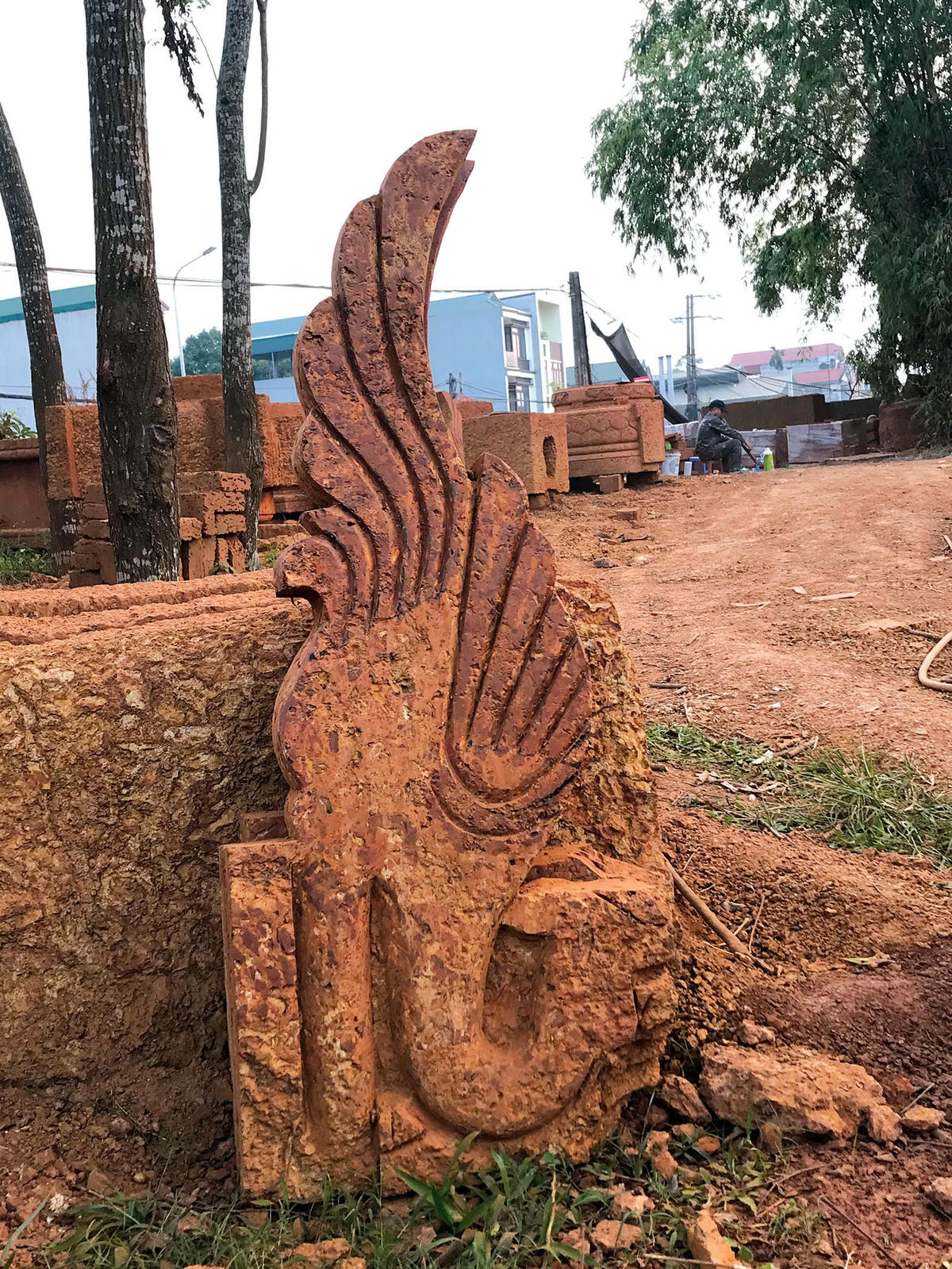 Về Bình Yên những ngày này, trên con đường liên huyện đang sửa chữa, nâng cấp, những xưởng chế tác đá ong hoạt động khá sôi động. Gọi là “chế tác”, bởi hiện nay, đá ong ở đây không chỉ được khai thác, sản xuất thành những viên đá để phục vụ việc xây dựng đền, đình, chùa, nhà cửa, khu du lịch sinh thái… mà còn được những người thợ tài hoa tạo hình những sản phẩm có tính điêu khắc mỹ nghệ cao, như các hình tượng con voi, sư tử, rồng, nghê, hổ, trâu… Các họa tiết mà trước đây thường chỉ có đá xanh mới đáp ứng được thì nay, trên đá ong cũng có thể tạo ra như hình hoa sen, chim hạc ở những tảng đá làm chân cột, chân bệ.