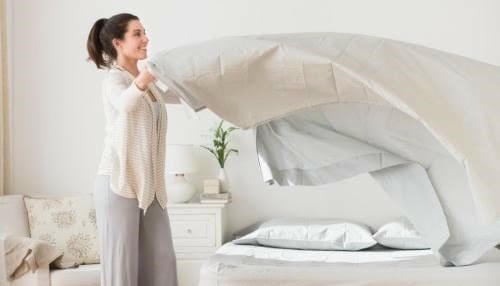 Vỏ gối và ga giường chứa rất nhiều dầu, các tế bào chết ở da và tóc, mang theo rất nhiều tế bào chết, mồ hôi và nấm mốc. Vì vậy, chúng ta cần thường xuyên giặt chúng và thay thế bằng những chiếc vỏ gối và ga giường sạch. Bạn nên giặt và thay ga giường ít nhất 2 tuần/lần hoặc 1 lần/tuần nếu bạn ra nhiều mồ hôi vào ban đêm để tránh vi khuẩn và vết bẩn có thể gây mụn trên da.