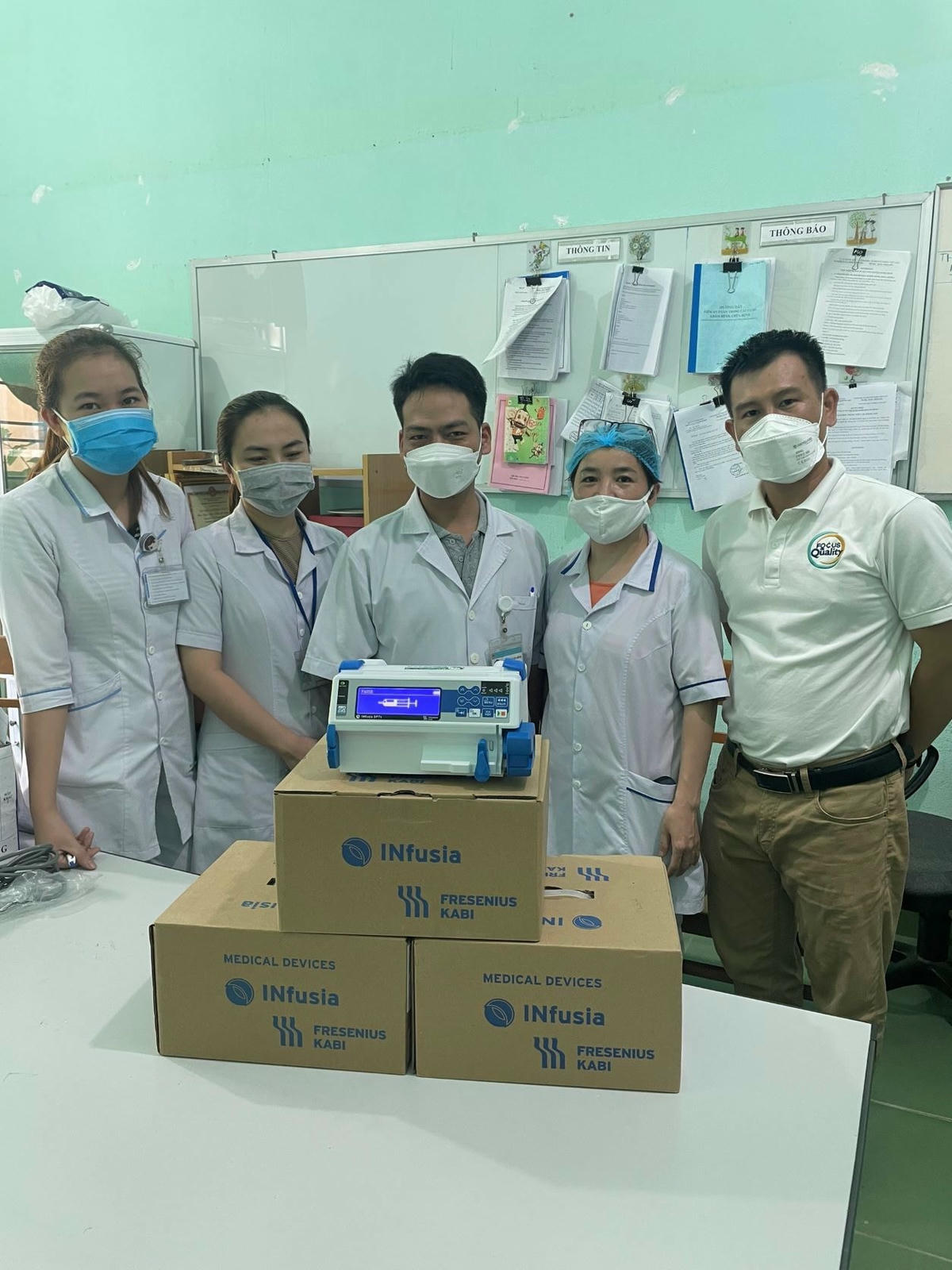 Cụ thể, VCF trao tặng 2 máy thở áp lực dương liên tục (CPAP), 4 đèn chiếu vàng da, 2 máy truyền dịch và 5 bơm tiêm điện cho TTYT huyện 2 huyện trên.