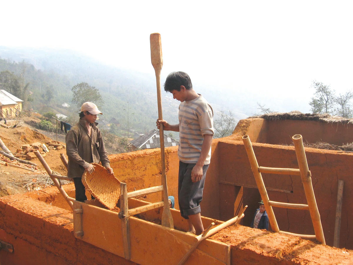 Công đoạn công phu nhất là trình tường nhà. Hầu như người đàn ông Hà Nhì nào cũng biết trình tường. Đầu tiên, đất sét được đưa vào ván khuôn nẹp chắc, mọi người dùng chày gỗ giã để đất kết dính, nén chặt với nhau. Làm hết lượt tường thứ nhất, lại tháo khuôn làm đến lượt tầng tường thứ hai và phải 5-6 lượt tầng như vậy mới tạo nên bức tường nhà vững chắc. Trong quá trình hoàn thiện, mọi người lại lấy vồ gỗ đập vào thành các bức tường cả ở phía trong và phía ngoài làm cho mặt tường thật phẳng và mịn, sau đó mới làm xà nhà và lợp mái. Tường được trình bằng đất sét như thế qua thời gian sẽ cứng như bê tông, chống lại mọi tác động của nắng mưa, có thể bền vững qua hàng trăm năm.