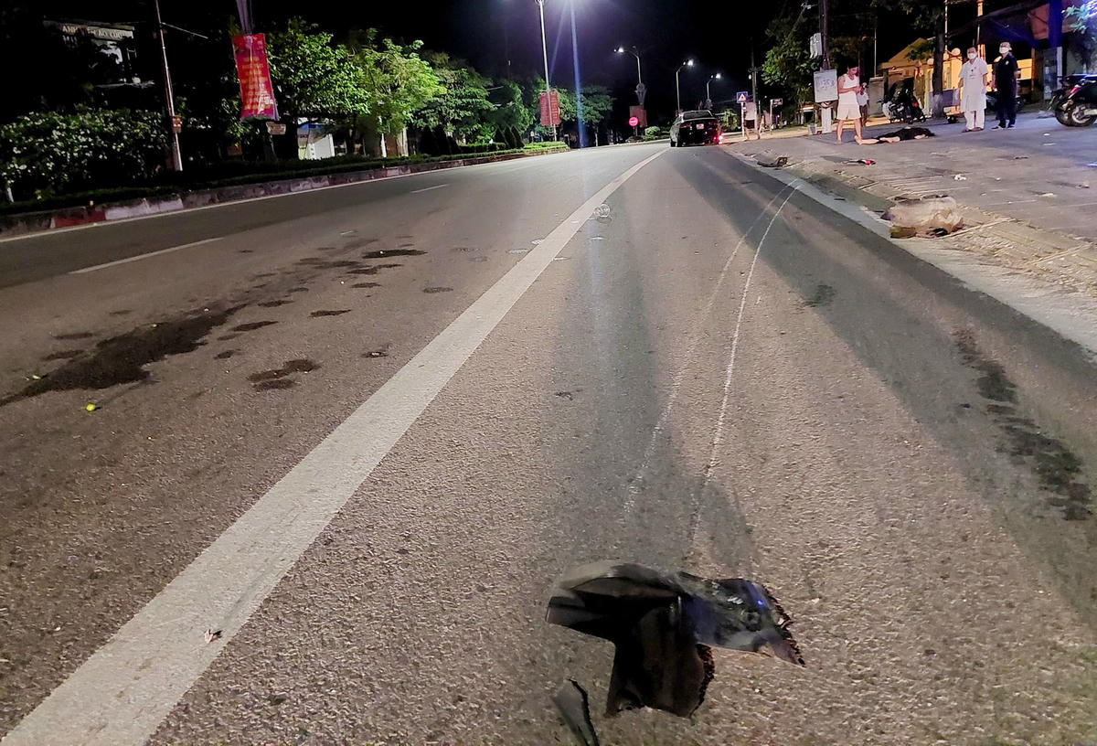 Cú va chạm mạnh khiến hai người phụ nữ bay lên vỉa hè, xe máy bị kéo trượt dưới gầm ô tô khoảng 40m.