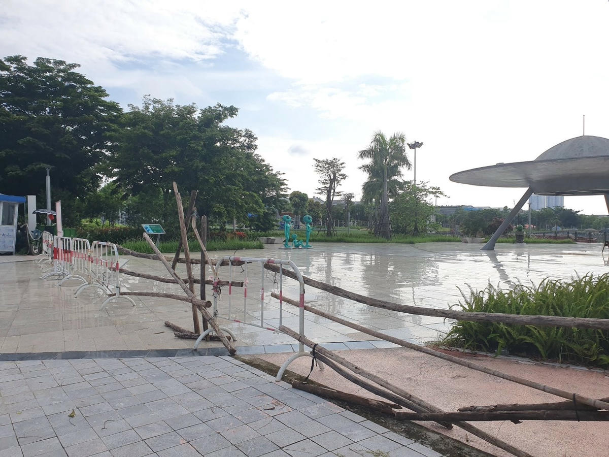 Theo quan sát của chúng tôi, lan can an toàn bao quanh ven hồ nhiều chỗ đã bị rỉ sét, gãy đổ. Một số khu vực trở thành nơi người dân mở quán nước. Đáng chú ý, trong khuôn viên của Công viên này xuất hiện một số hộ dân căng lều, bạt để chăn nuôi, trồng trọt và chơi cây cảnh…