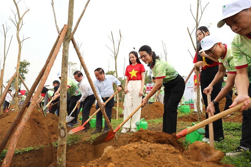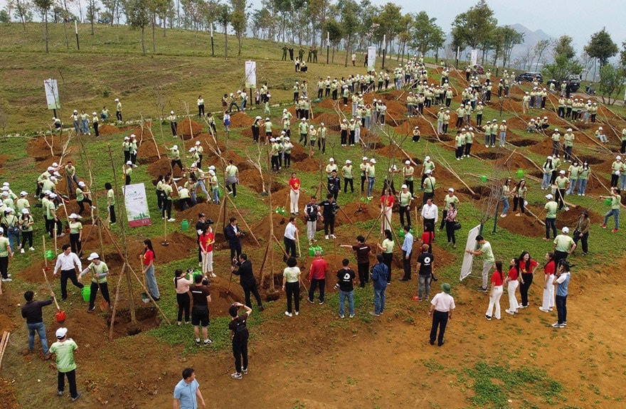 Sau Nghi thức Thượng cờ Tổ quốc trang nghiêm, xúc động tại quảng trường Nhân Dân, khoảnh khắc được mong chờ nhất, đồng thời cũng là hoạt động trọng tâm của Lễ trồng cây năm 2023 chính là khi các đại biểu cùng toàn thể nhân dân tỉnh Lai Châu, hơn 500 Đoàn viên thanh niên là CBCNV Agribank, các tình nguyện viên… cùng nhau ươm trồng hơn 200 cây Hoa Ban vào lòng đất mẹ.