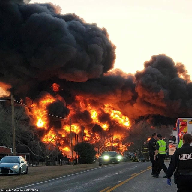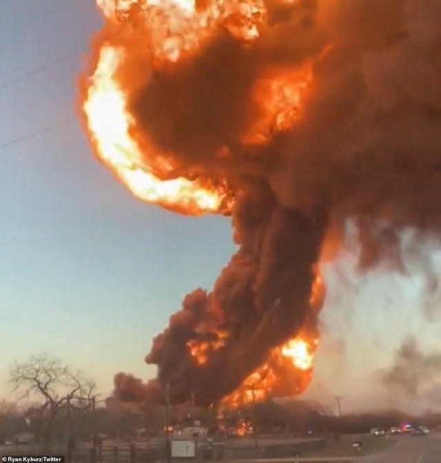 Một tàu chở hàng 110 toa va chạm với xe tải ở bang Texas, Mỹ, khiến các toa chở dầu phát nổ như "cầu lửa".