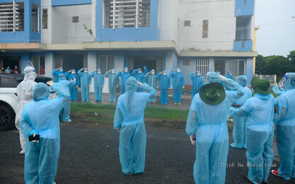“Một cảm xúc dâng trào không bao giờ chúng tôi có thể quên”, MC Quỳnh Hoa chia sẻ khi cùng đội tình nguyện viên nghệ sĩ, bác sĩ cùng hát vang Quốc ca giữa bệnh viện dã chiến.