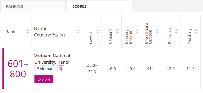 Trong đó, ĐH Quốc gia Hà Nội duy trì vị trí trong top 601-800 của lĩnh vực Khoa học cơ bản (Physical Sciences) so với THE WUR by Subject 2021.