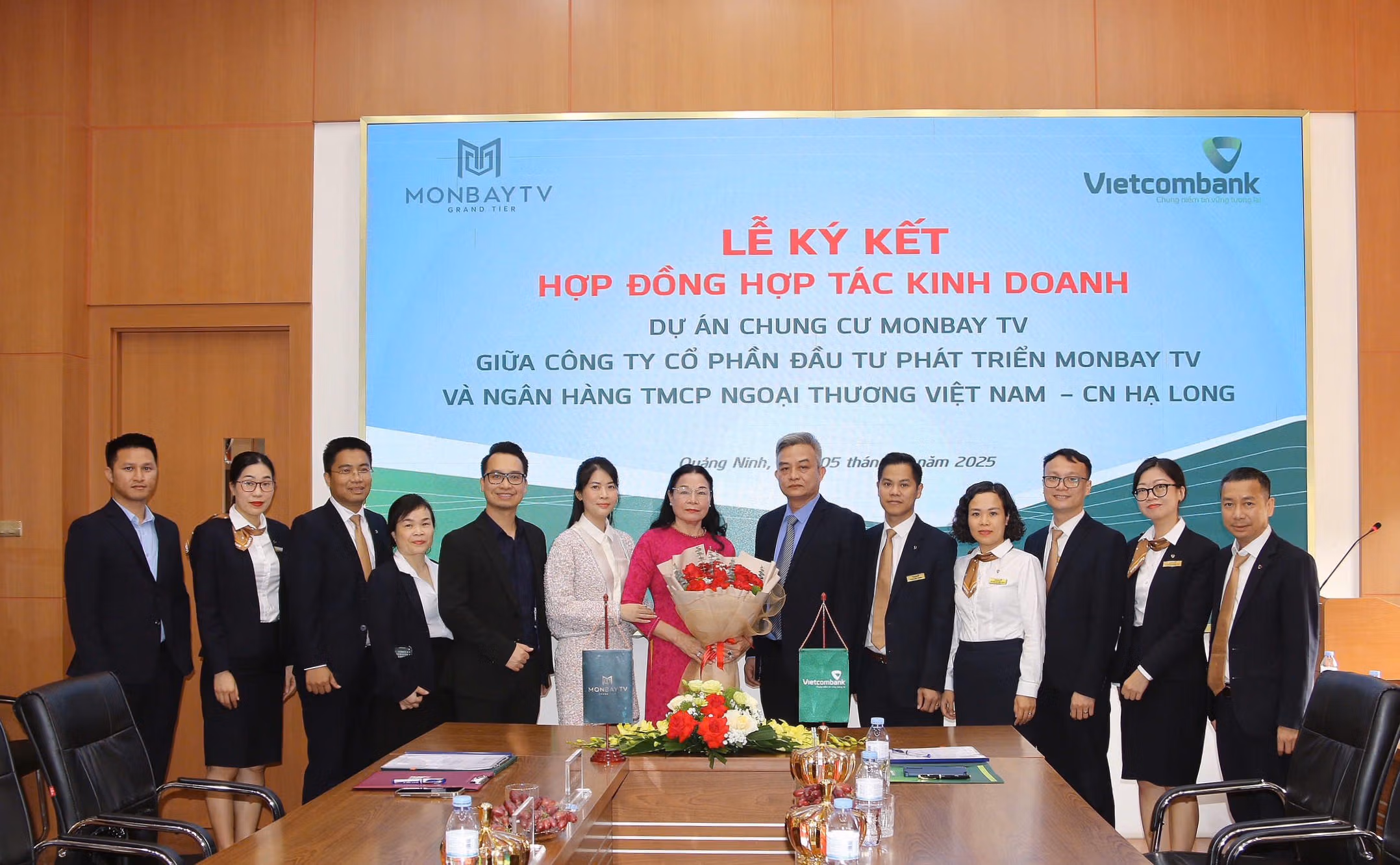 Ngày 5/12/2025, tại trụ sở Vietcombank Hạ Long (số 166, đường Hạ Long, phường Bãi Cháy, tỉnh Quảng Ninh) đã diễn ra Lễ ký kết Hợp đồng hợp tác kinh doanh tài trợ khách hàng bán lẻ mua nhà tại dự án Chung cư Monbay TV giữa Vietcombank Hạ Long và Công ty Cổ phần Đầu tư Phát triển Monbay TV.