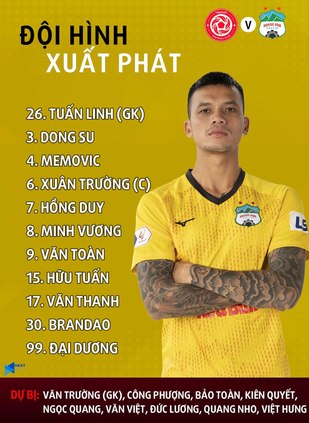 Viettel: Nguyên Mạnh, Ngọc Hải, Tiến Dũng, Duy Thường, Thanh Bình, Hoàng Đức, Jakhongir, Văn Hào, Trọng Hoàng, Caique, Pedro .
