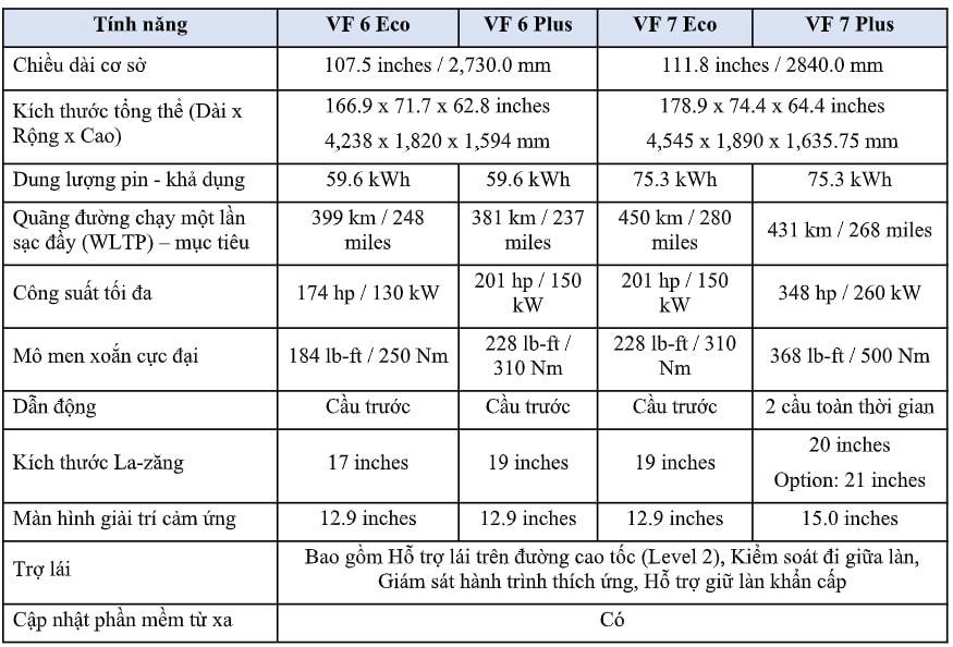 VinFast cho biết, thông số về quãng đường di chuyển mục tiêu theo tiêu chuẩn WLTP. Tiêu chuẩn EPA sẽ được công bố ngay khi có.