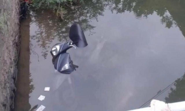 Tại hiện trường, các nạn nhân vẫn đội mũ bảo hiểm. Riêng chiếc xe máy được cho là của các nạn nhân bị chìm sâu dưới nước.