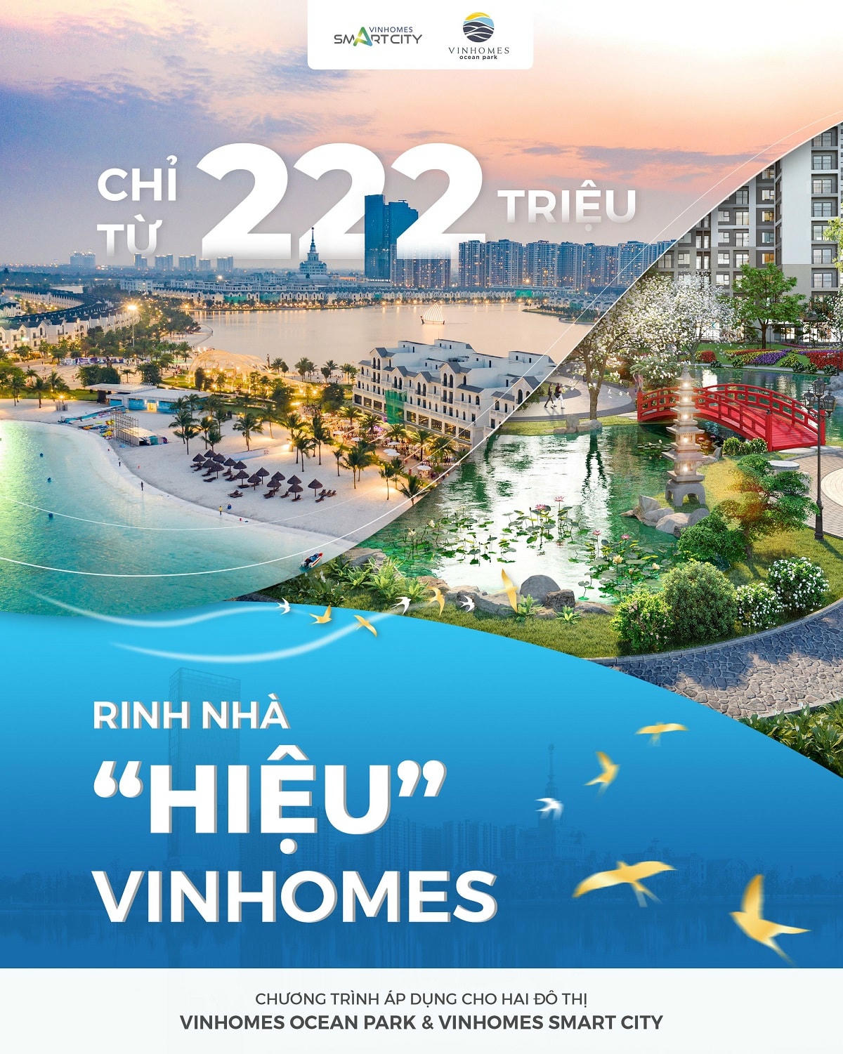 Theo đó, khách hàng có nhu cầu mua nhà chỉ cần số vốn ban đầu từ 250 triệu đồng đã có thể ngay lập tức sở hữu căn hộ đẳng cấp tại hai đại đô thị Vinhomes Ocean Park và Vinhomes Smart City. Đặc biệt, khách hàng mua nhà theo chương trình ưu đãi "Chỉ từ 250 triệu, Rinh nhà hiệu Vinhomes” sẽ được hưởng những chính sách đặc quyền như vay đến 80 - 85% giá trị căn hộ, hỗ trợ lãi suất 0% lên tới 28 tháng, voucher mua xe ô tô VinFast trị giá lên tới 200 triệu đồng cùng nhiều ưu đãi vượt trội khác.