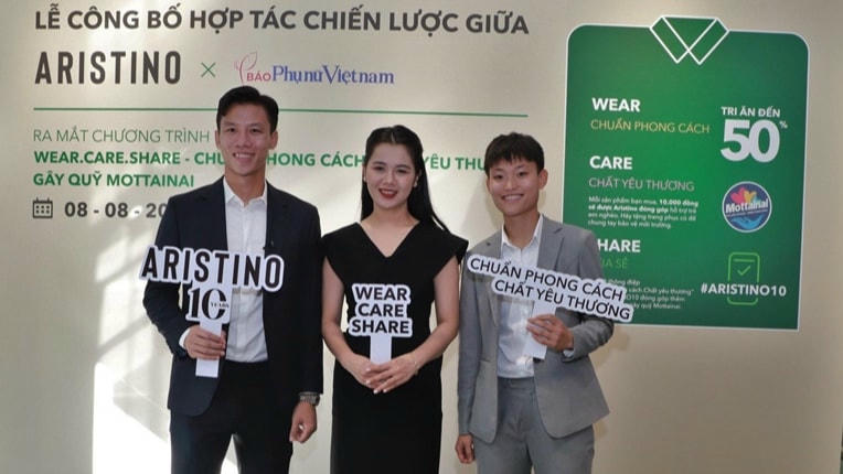 Trong khuôn khổ họp báo triển khai chiến dịch “Wear care share - Chuẩn phong cách, chất yêu thương” gây quỹ Mottainai chiều 8/8, Báo Phụ nữ Việt Nam đã công bố 81 địa điểm nhận quyên góp quần áo cũ Mottainai tại 81 showroom Aristino trên toàn quốc.