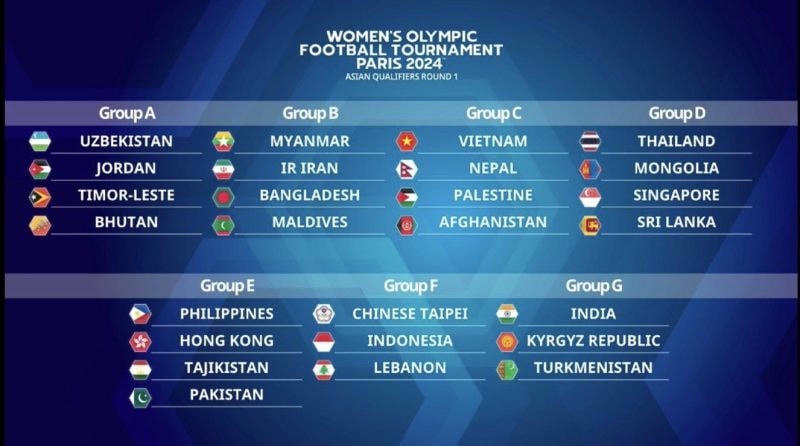 Theo kết quả bốc thăm chiều ngày 12/1, ĐT nữ Việt Nam thi đấu tại bảng C Vòng loại thứ nhất Olympic Paris 2024 cùng các đội tuyển Nepal, Palestine và Afghanistan.