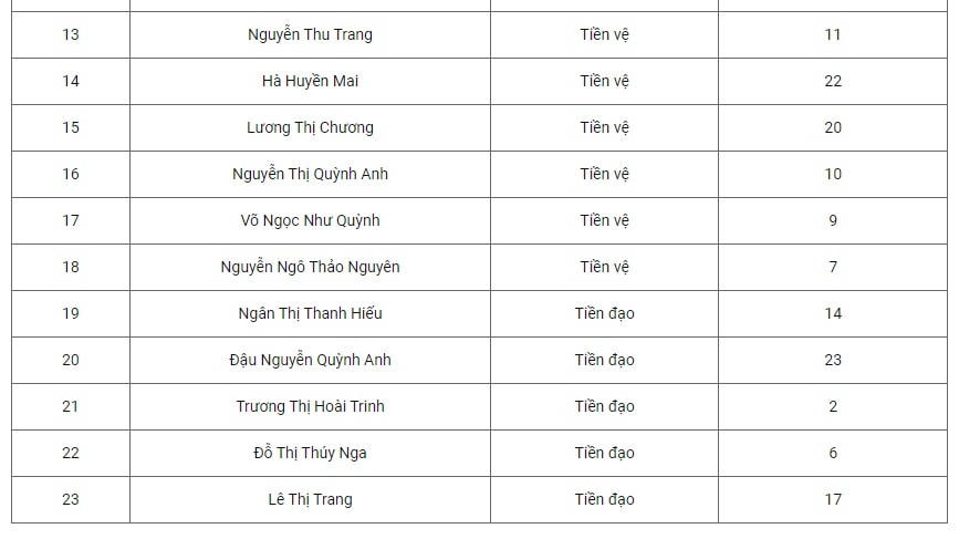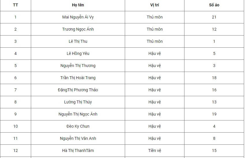 Danh sách chính thức đội tuyển U17 nữ Việt Nam tham dự Vòng loại U17 nữ châu Á 2024 (bảng C) như sau: