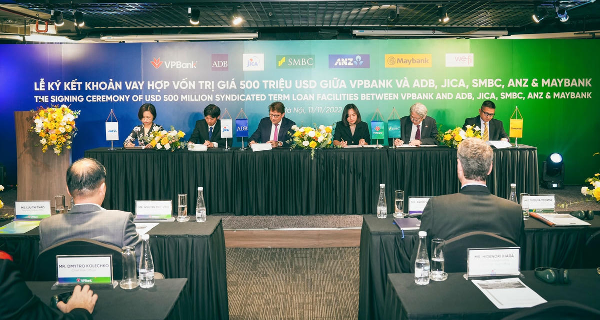 Ngân hàng TMCP Việt Nam Thịnh Vượng (VPBank) hôm nay đã ký kết thành công thỏa thuận vay hợp vốn trị giá 500 triệu USD, tương đương gần 12,5 nghìn tỷ đồng từ năm định chế tài chính lớn bao gồm Ngân hàng Phát triển Châu Á (ADB), Tập đoàn tài chính Sumitomo Mitsui Banking Corporation (SMBC), Cơ quan Hợp tác Quốc tế Nhật Bản (JICA), Ngân hàng ANZ và Công ty Chứng khoán Maybank Securities Pte. Ltd. – thành viên của Tập đoàn Ngân hàng đầu tư Maybank.