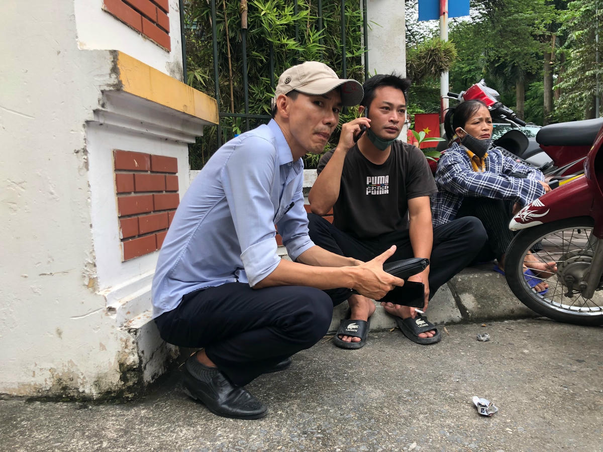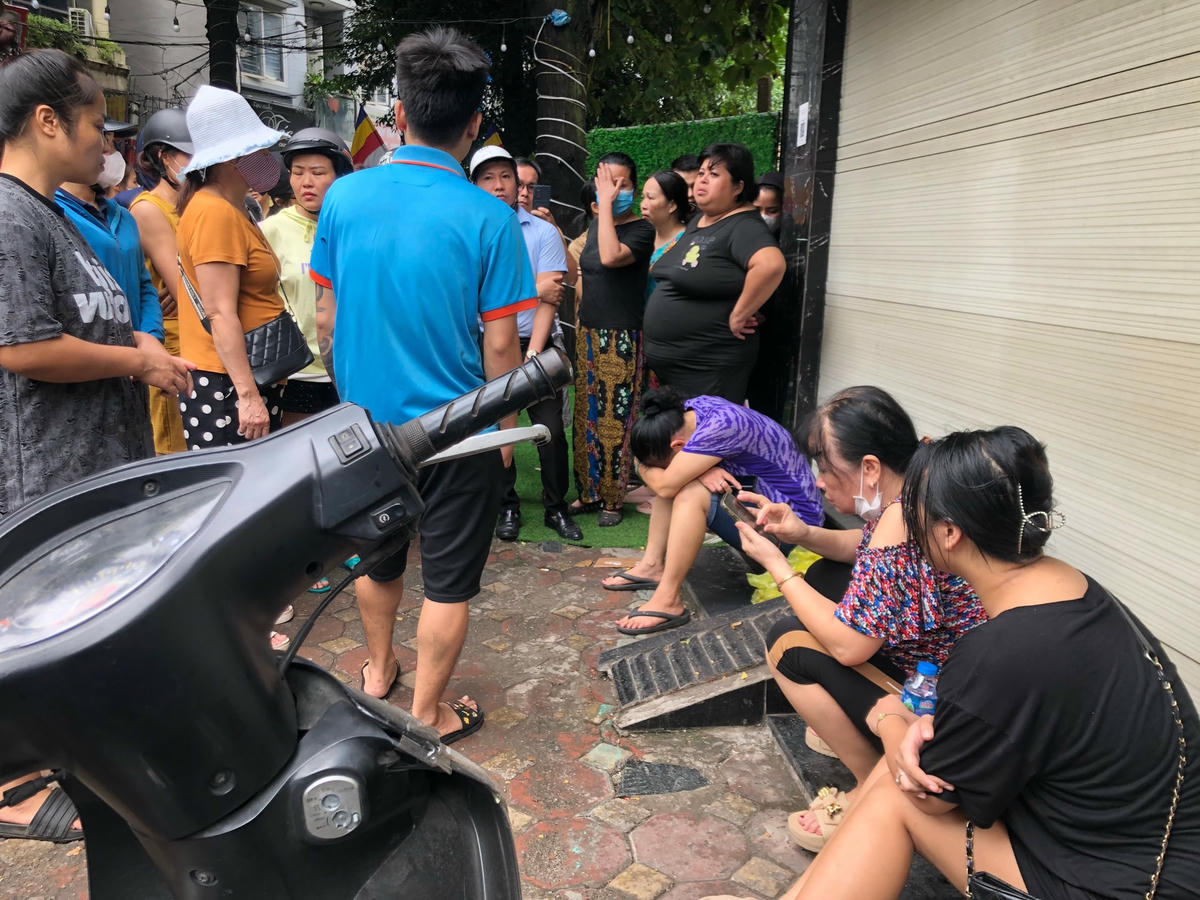 Nhiều người tập trung trước trụ sở Công an phường Khương Đình để nghe ngóng thông tin người nhà trong vụ cháy chung cư mini tại Hà Nội.