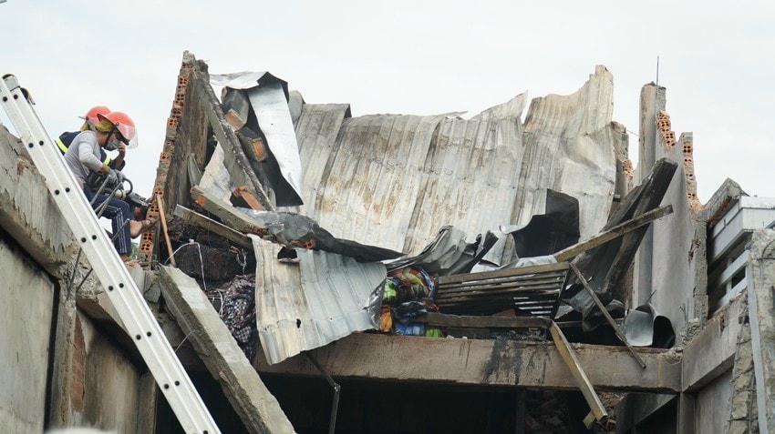 Đến 13h ngày 13/8, ngọn lửa được khống chế nhưng bên trong vẫn cháy âm ỉ. Lực lượng chức năng đã dùng xe múc để múc tường nhà tìm kiếm các nạn nhân mắc kẹt bên trong.