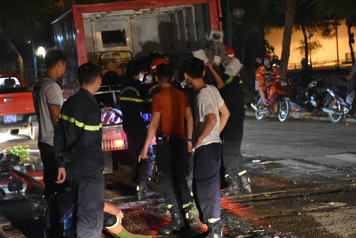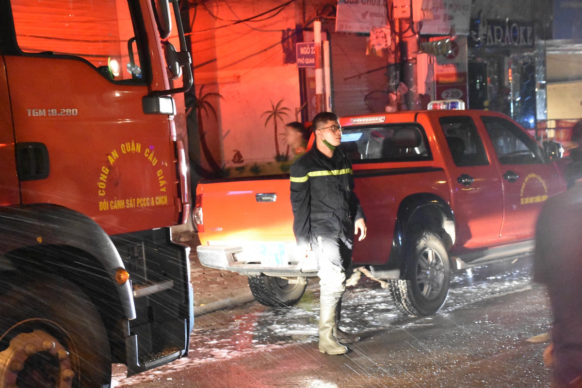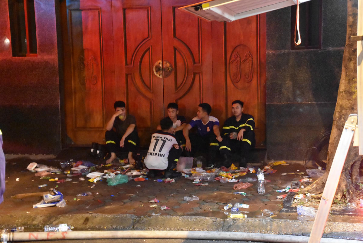 Đến đêm muộn ngày 1/8, liên quan đến vụ cháy quán karaoke tại địa chỉ 231 Quan Hoa (quận Cầu Giấy), lực lượng chức năng vẫn khẩn trương nhiệm vụ dọn dẹp hiện trường sau khi đám cháy đã được dập tắt.