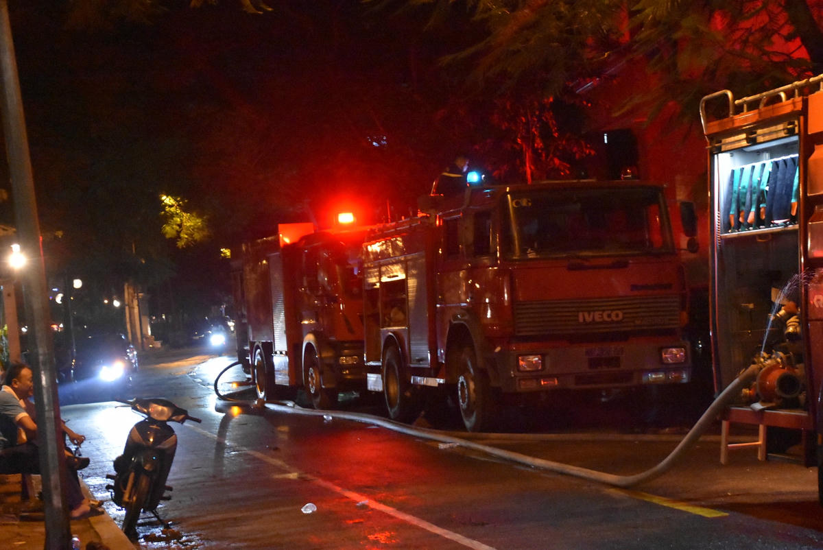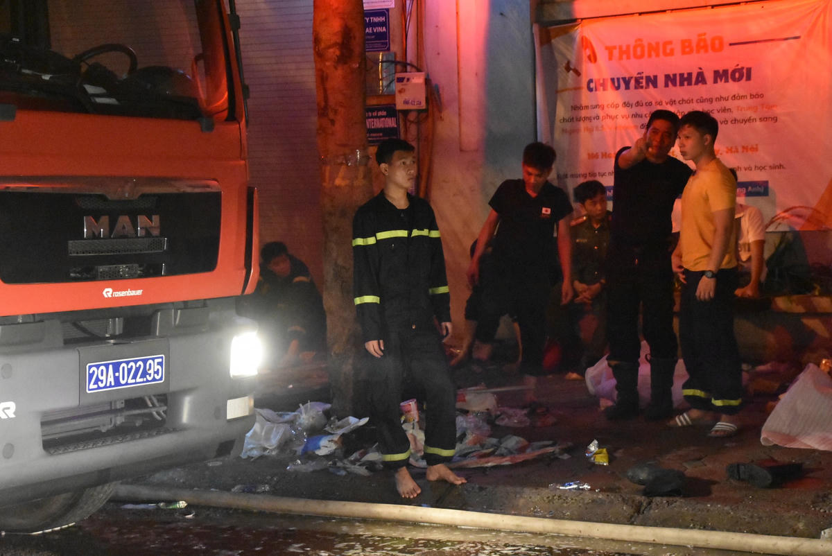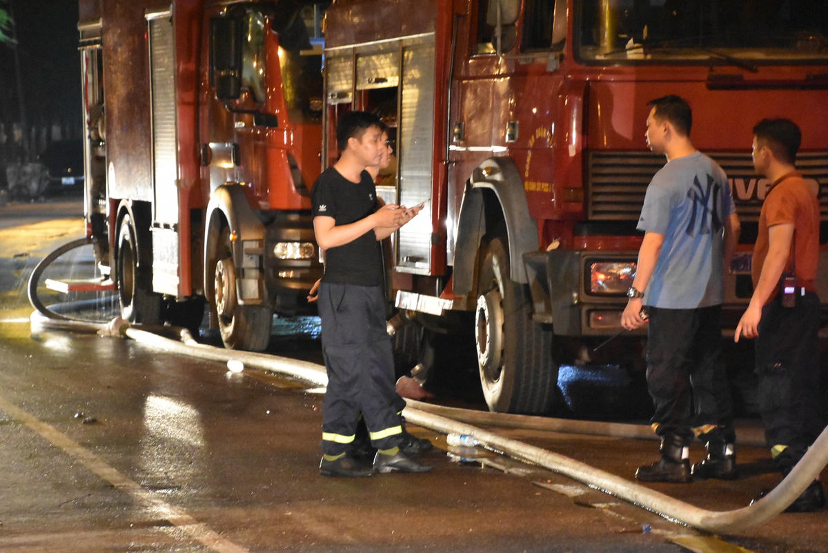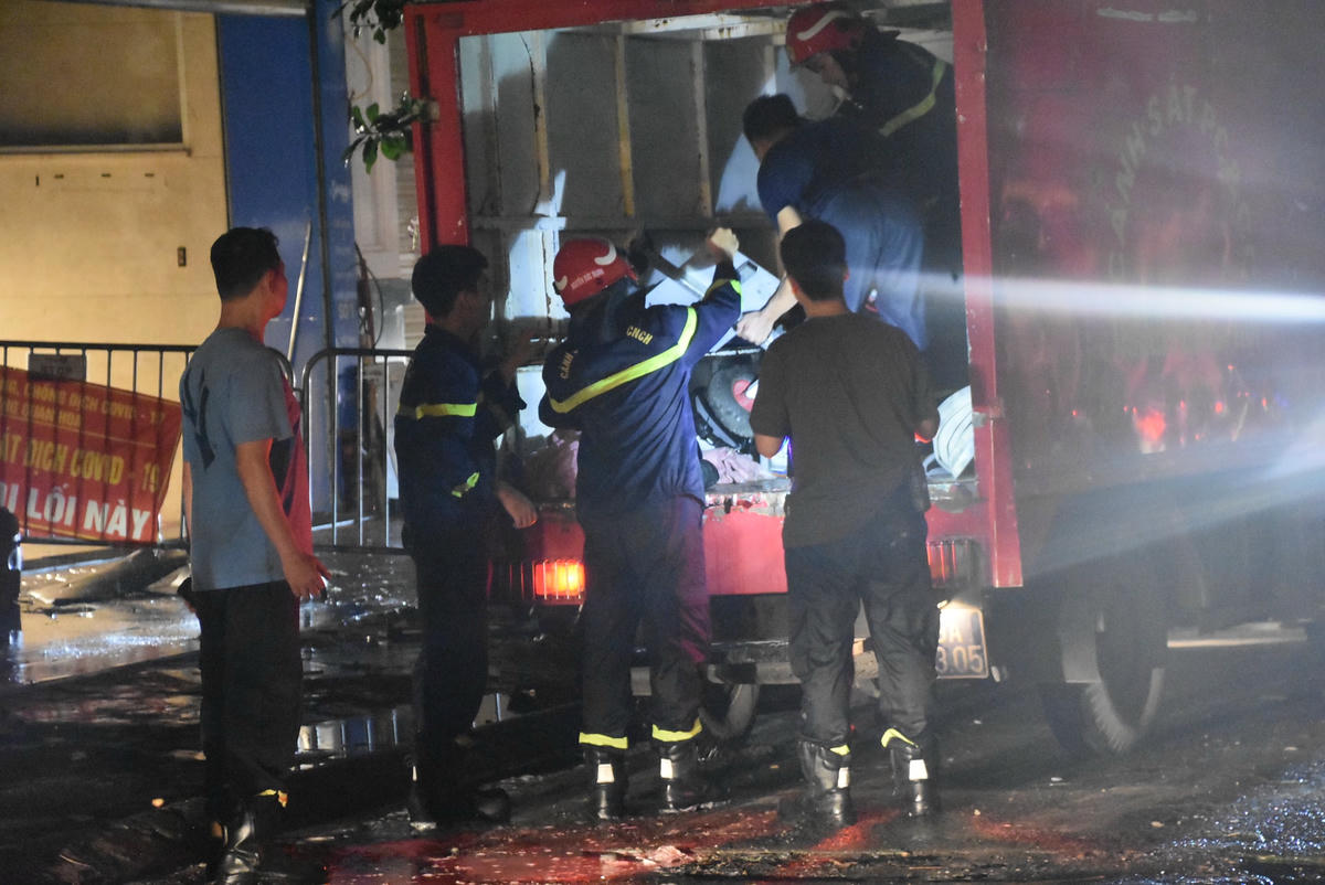 Đến đêm muộn ngày 1/8, liên quan đến vụ cháy quán karaoke tại địa chỉ 231 Quan Hoa (quận Cầu Giấy), lực lượng chức năng vẫn khẩn trương nhiệm vụ dọn dẹp hiện trường sau khi đám cháy đã được dập tắt.